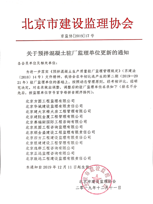 我公司進入預拌混凝土駐廠監(jiān)理單位名錄